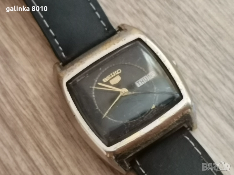 Мъжки часовник Сейко автомат, рядък модел, работи, сменя ден и дата и бързите смени работят, спукано стъкло, машина 63-19, 21 камъка, Големия баланс.