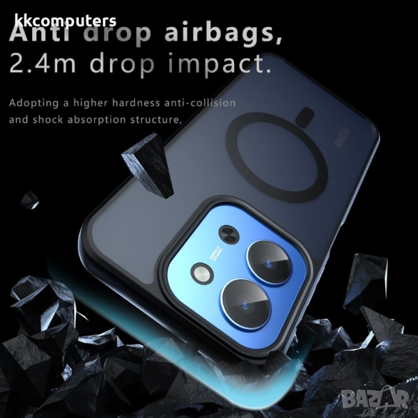 Надеждна защита от падане (2.4м): Уникална система с въздушни възглавнички в четирите ъгла поглъща ударите при падане. Специалната двуслойна конструкция (PC + TPU) предлага максимална защита при всеки инцидент.