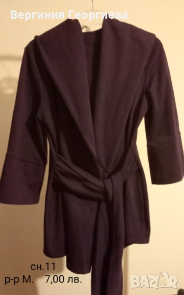 7/8 ръкав, без закопчаване, с леко вталена кройка. Гр. об. - 92 см, дължина - 70 см, предницата е леко удължена, ръкав - 46 см.