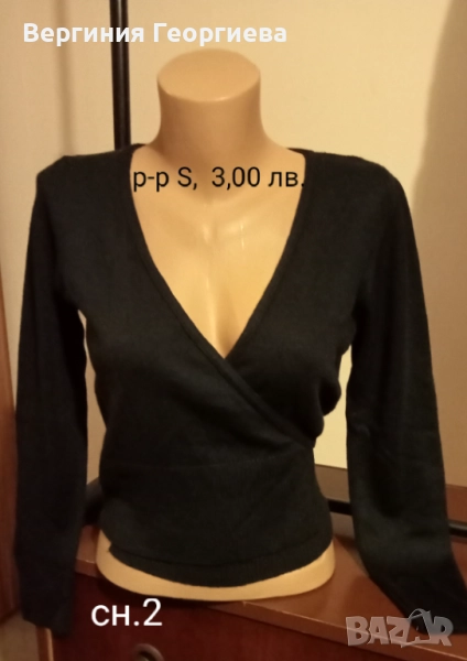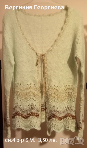 Сн.2 - жилетка "прегърни ме" от фино плетиво с малко вълна в състава. Гр. об. - 88 см, дължина - 50 см.