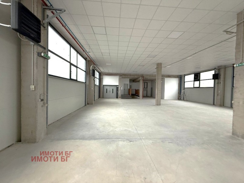 - На етаж 1, със застроена площ от 940 кв.м. са разпределени: голямо помещение за производство/склад с площ от 600кв.м и светла височина от 4,70 метра, автоматични врати за товаро-разтоварване и изградена рампа; офисна част, шоурум, санитарни възли и др.
