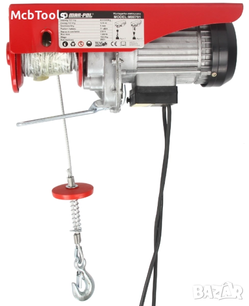 Електрическа въжена лебедка 400 / 800кг 12м 1300W Mar-Pol