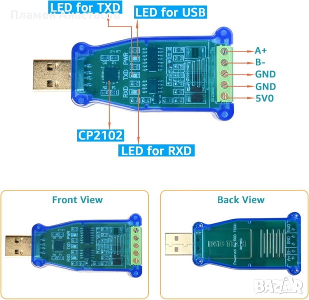 Интерфейс: USB 2.0 (съвместим и с USB 1.1) → RS485