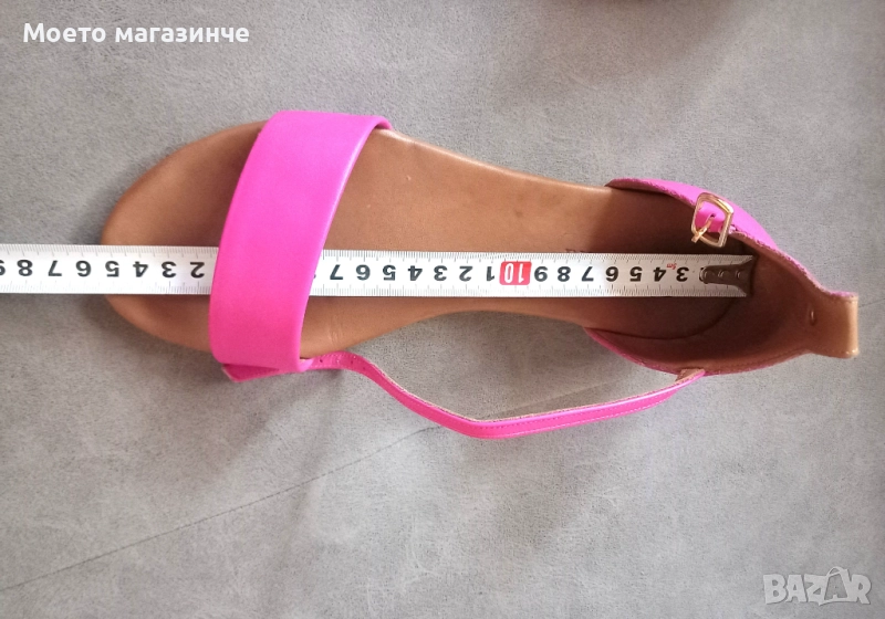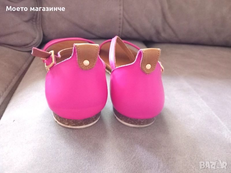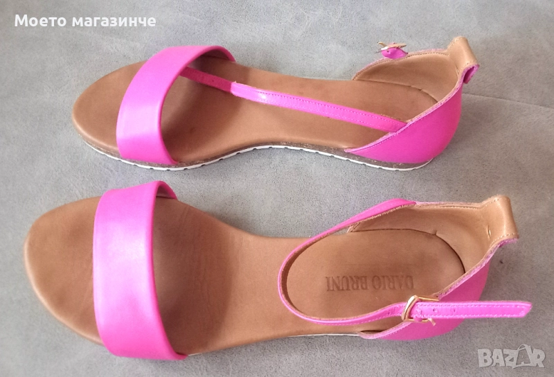 Удобни свежи дамски сандали Dario Bruni, изцяло от естествена кожа в ярък розов цвят (фуксия). С елегантна каишка около глезена и регулируема катарама. Леки, удобни и стабилни – с мека кожена стелка и леката, гъвкава подметка. Носени са малко, в отлично състояние, без забележки.