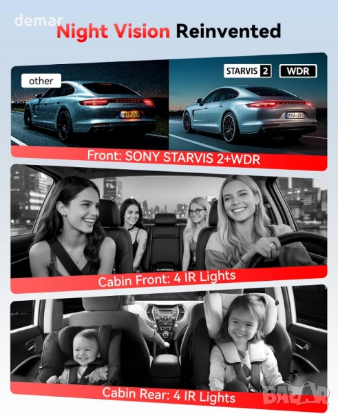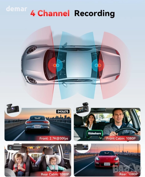 видеорегистраторна камера осигурява пълно 360° покритие с предна, задна и двойна камери в кабината за максимална видимост и защита. Въртящата се задна камера с два обектива заснема както трафика, така и активността в купето, идеална за семейства или шофьори на споделено пътуване. С вграден сензор STARVIS 2 и инфрачервено нощно виждане, тя предоставя ясни и отчетливи кадри дори при слаба светлина. Вграденият GPS и 5.8GHz WiFi позволяват бързо изтегляне, преглед в реално време и проследяване на пътуването чрез специалното приложение. Гласовото и сензорно управление улесняват работата, а суперкондензаторът осигурява надеждна употреба при екстремни температури. С режим на паркиране, G-сензор, цикличен запис и опции за timelapse, тя осигурява денонощна сигурност и автоматично заключва важни кадри.