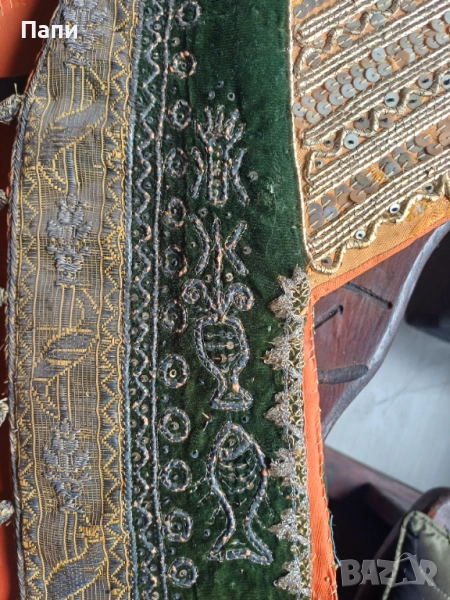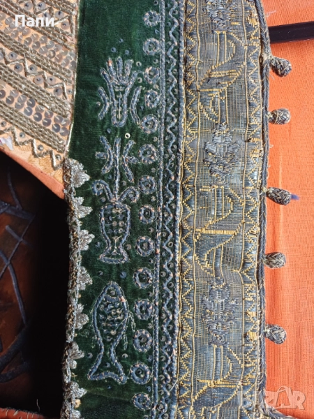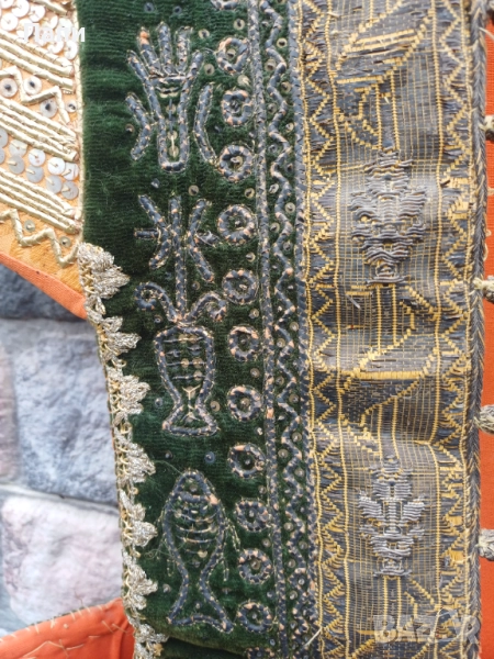 Елек от османската епоха,предполагам че е бил на християнка. Символ "Ж"-дървото на живота. Другият символ е рибата(плодородието),която често е изобразявана в корените на вселенското дърво. Това са старите тракийски символи. Изключително рядък,златен,сърмен,кадифен.