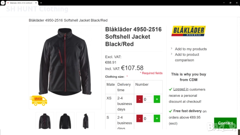 Марка: BLAKLADER 4950-2516 Softshell Work Jacket Black/Red - работна горница. Използвана в отлично състояние.