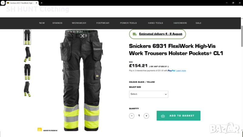 Snickers 6931 Flexi Work High-Vis Work Stretch Trousers With Holster Pockets - еластичен работен панталон. Има джоб на коляното за наколенка , гъба.