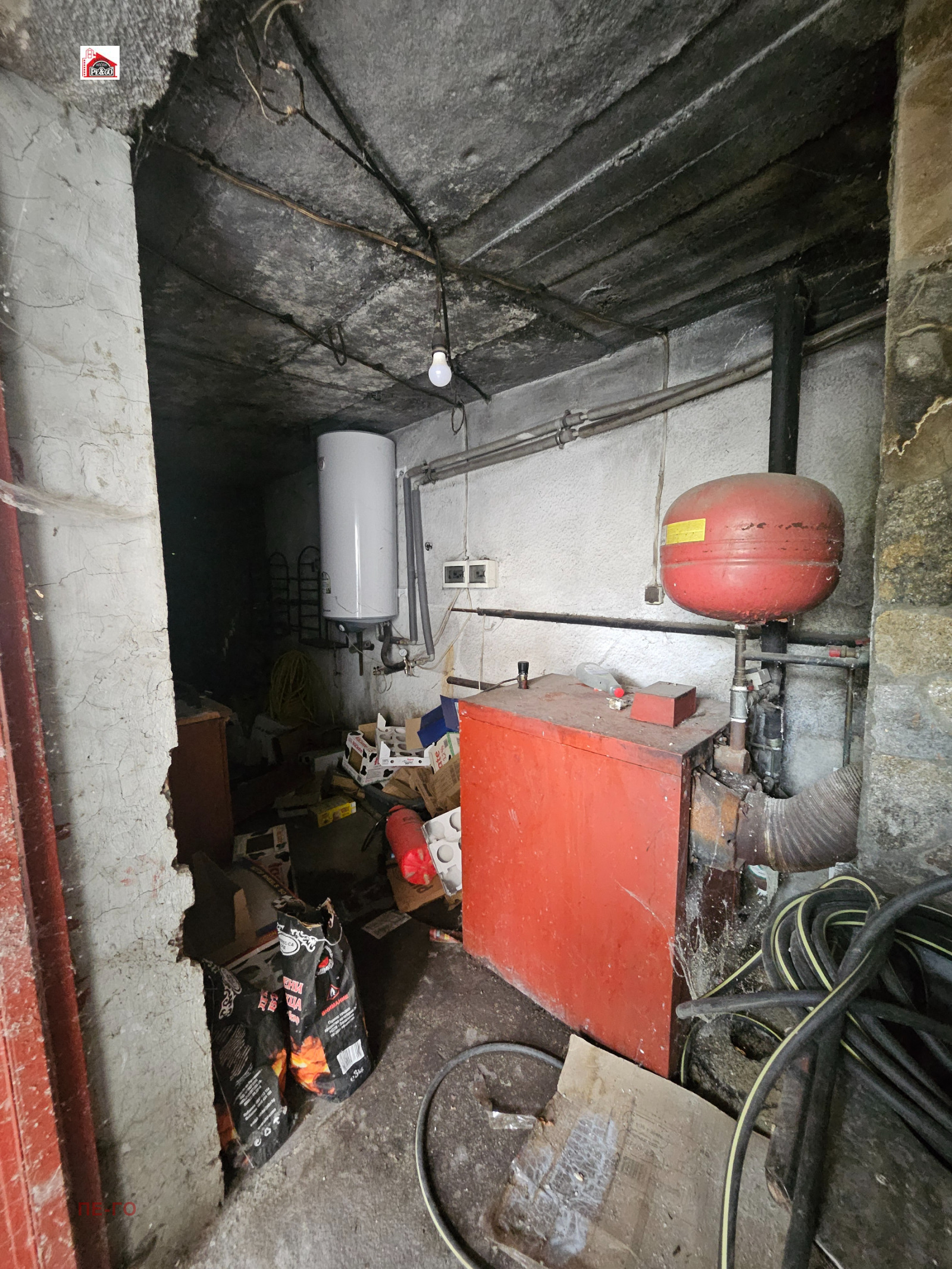 Имотът е **саниран**, **напълно обзаведен**, с **локално парно отопление** и **добре поддържан**. В двора има **гараж** и **котелно помещение**.