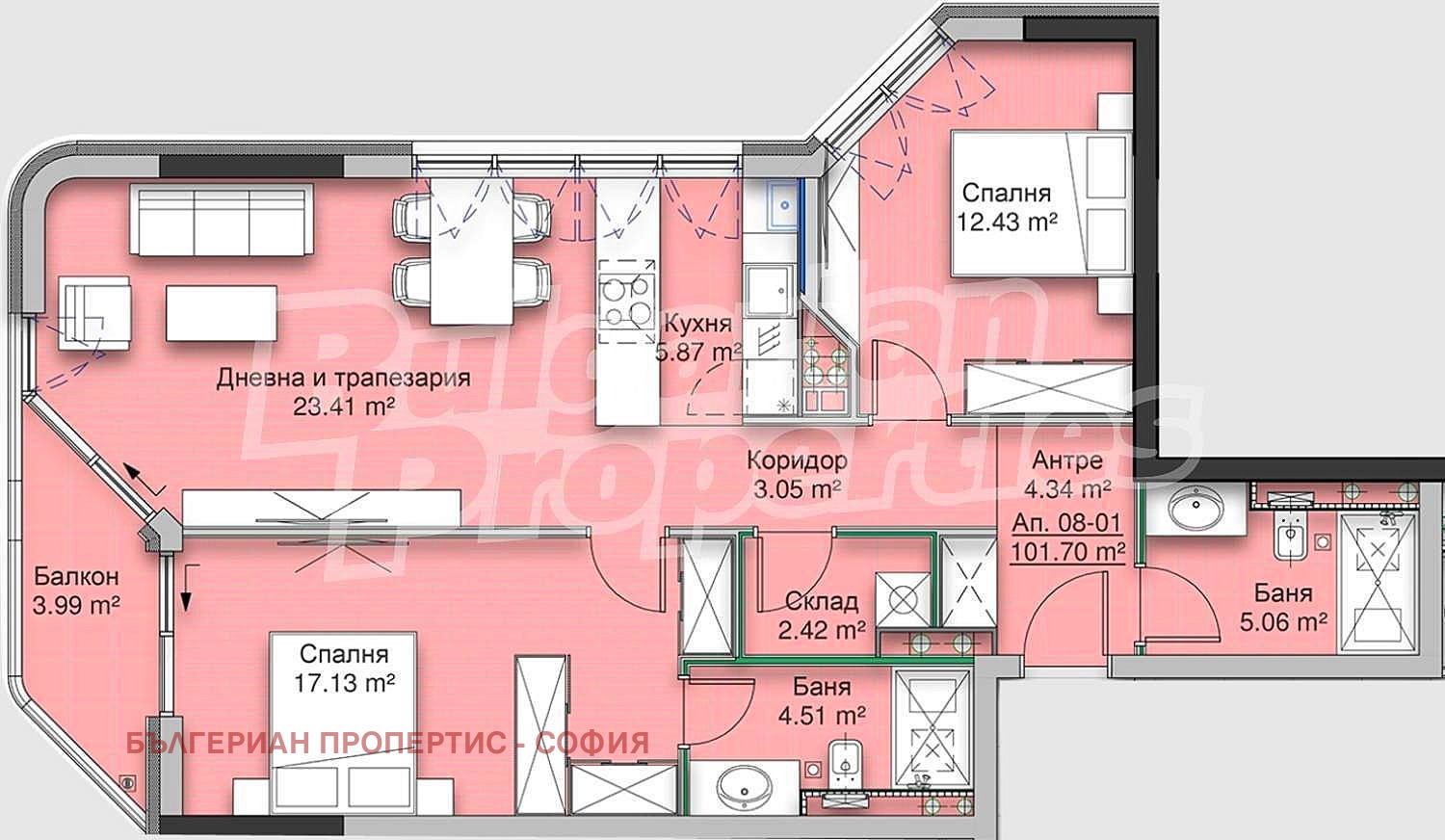 Разпределението е проектирано с мисъл за удобството и уюта на бъдещите собственици просторни помещения, високи тавани и естествена светлина, която изпълва жилището през целия ден.