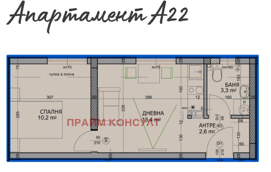 🔹 Просторна всекидневна с кухненски бокс
