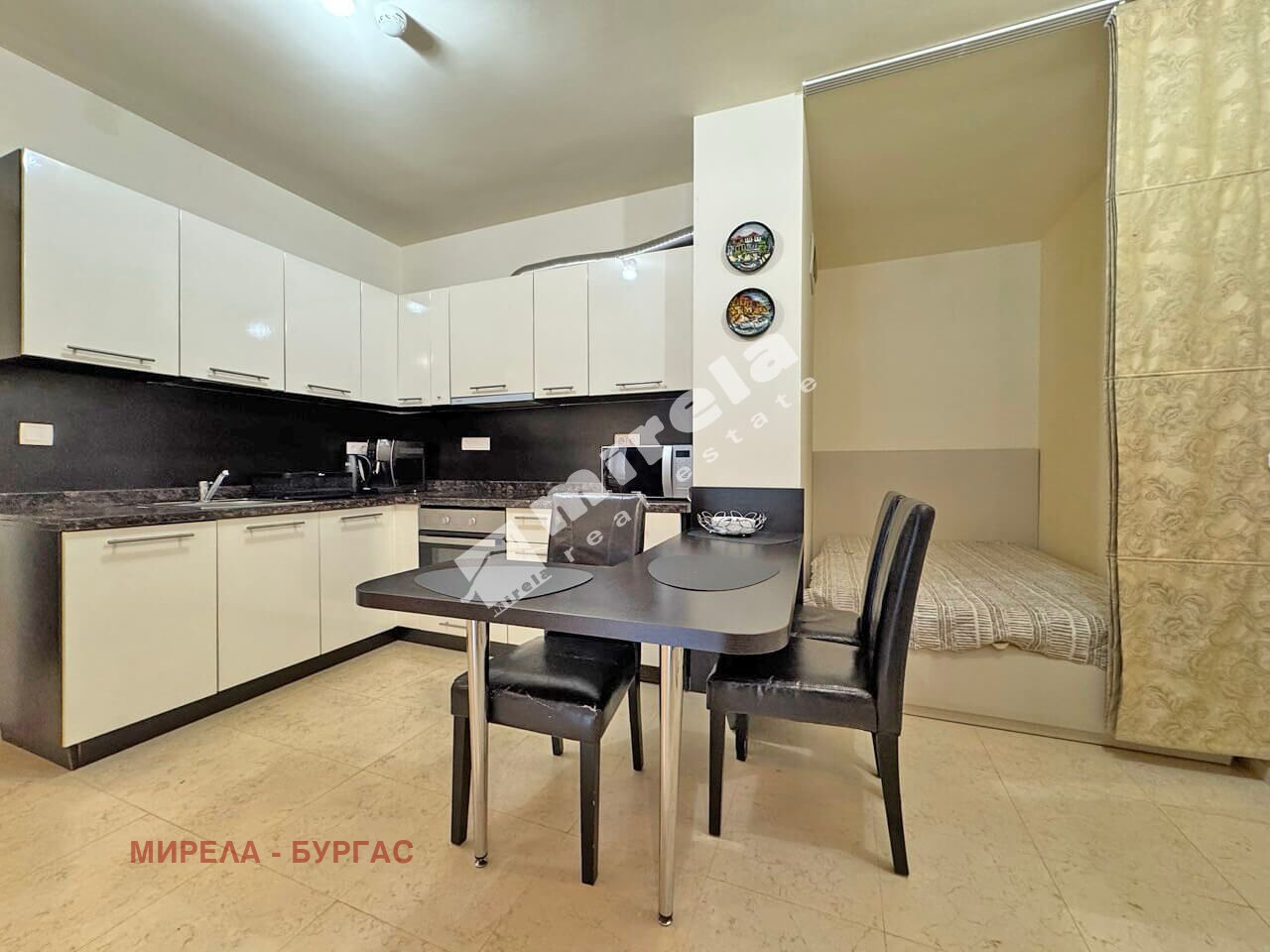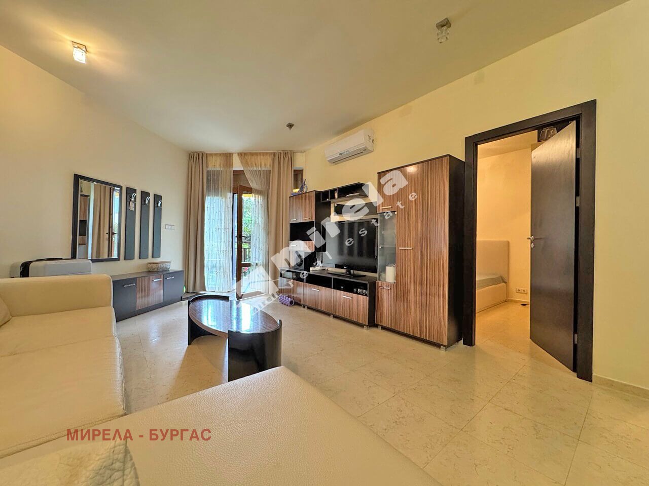гледка море; Имотът има жилищен статут; Има надземно паркомясто; Сградата няма асансьор; Продава се с обзавеждане, което подлежи на уточнение; Има физическа охрана; ЕТАП НА СТРОИТЕЛСТВО: разрешение за ползване (Акт 16); ОТОПЛЕНИЕ: климатик; Има 1 балкон/тераса; С довършителни дейности; Има такса поддръжка; Преходен; Целогодишно ползване; ВИД СТРОИТЕЛСТВО: тухла; ГОДИНА НА СТРОИТЕЛСТВО: 2010 г.; ИЗЛОЖЕНИЕ: гледка към озеленен двор; СПАЛНИ: 1; БАНИ: 1; ДОГРАМА: Алуминиева