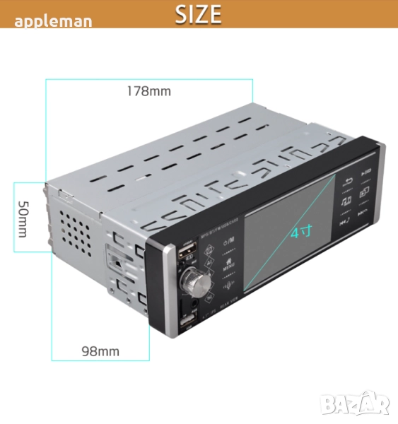 Mp3 / Mp4 / Mp5 Car Player - възпроизвежда на дисплея видео клипове, филми и музика и пасва идеално на по-старите коли с място за стандартно радио.