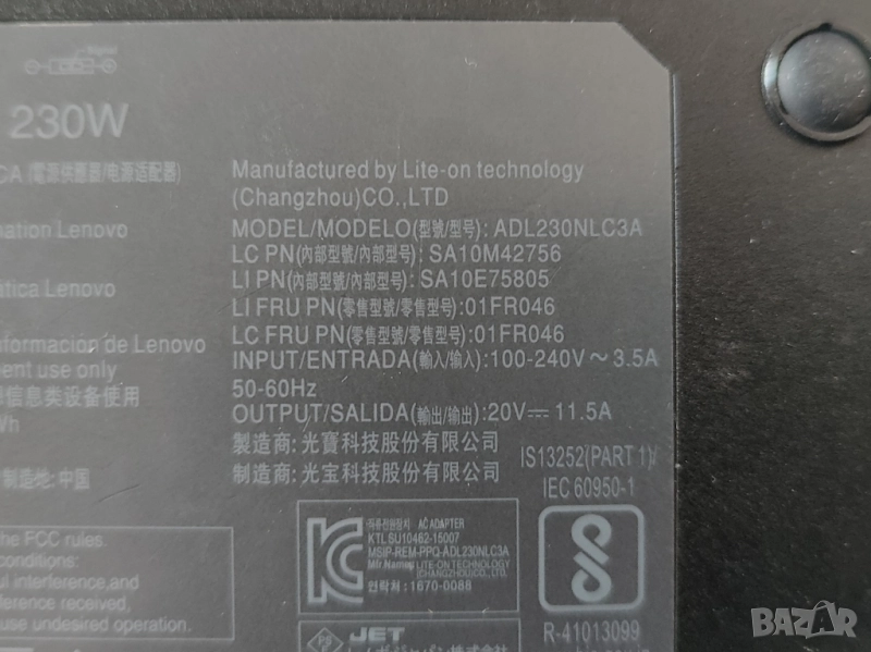 Оригинално зарядно за LENOVO 20V / 11.5A / 230W → Обява 52077053