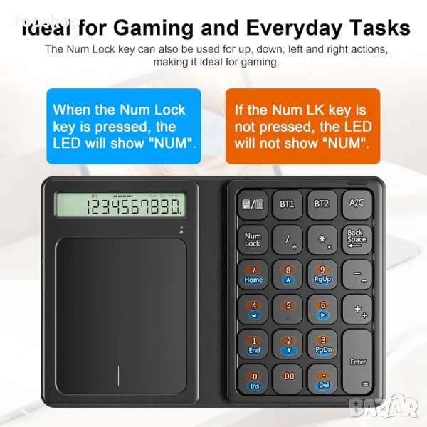 Нова Bluetooth цифрова клавиатура, сгъваема 2.4G безжична цифрова клавиатура с дисплей, калкулатор..