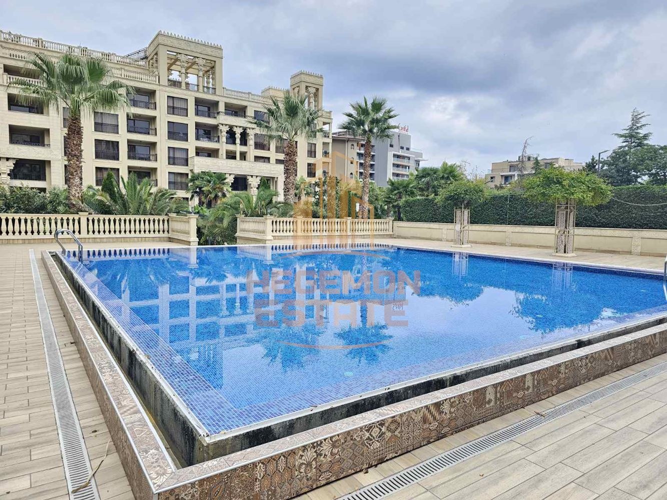 Агенция за недвижими имоти HEGEMON ESTATE Ви предлага просторен двустаен апартамент в к.к. Златни пясъци. Жилището се намира в затворен комплекс на ет. 3/8 с асансьор и отлични общи части. Разпределение: широко входно антре, всекидневна с кухненска част, спалня, комбиниран санитарен възел, тераса, на която се излиза и от двете стаи. Апартамента е в отлично състояние и се продава обзаведен и оборудван във вида от снимките. В комплекса има четири басейна, бар, фитнес и прекрасна градина. Чудесна възможност за инвестиция или живеене в близост до морския бряг.