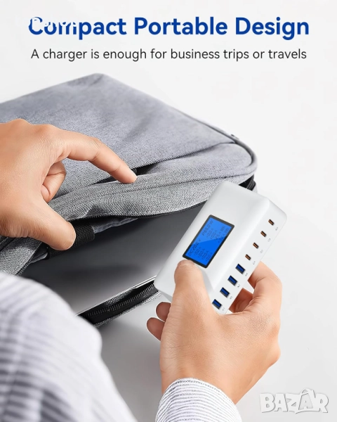 【Компактно, преносимо】: С компактния си дизайн, това USB-C зарядно е лесно за носене и идеално за пътуване. Компактният му корпус е съобразен както с C порта, така и с USB порта, така че можете да поддържате различните си електронни устройства работещи, без да се налага да носите различни оригинални зарядни устройства.
