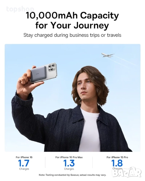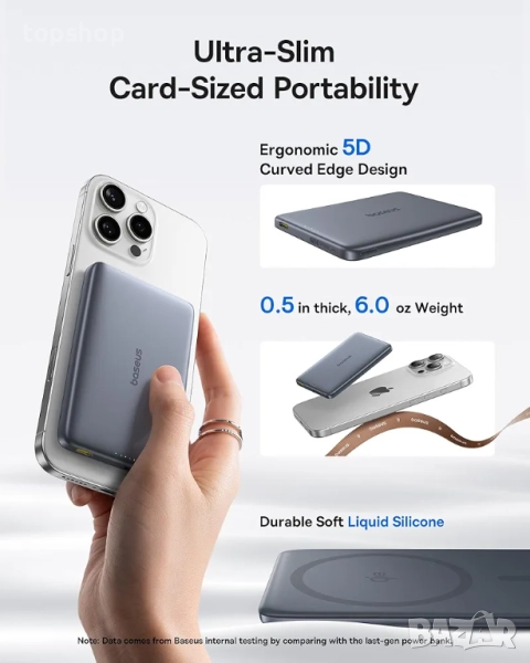 Ултратънка и преносима батерия MagSafe с капацитет 10 000 mAh】С дебелина само 0,5 инча, тази преносима батерия с размер на кредитна карта се побира лесно в джоба ви, предлагайки капацитет от 10 000 mAh – достатъчен за зареждане на iPhone 16 до 1,7 пъти. Идеална за пътуващи и пътуващи до работа, лекият дизайн (тежи по-малко от повечето смартфони) осигурява захранване за целия ден, без да добавя обем.