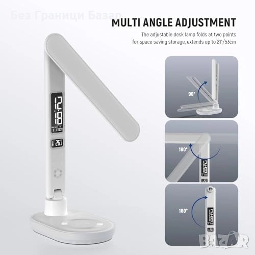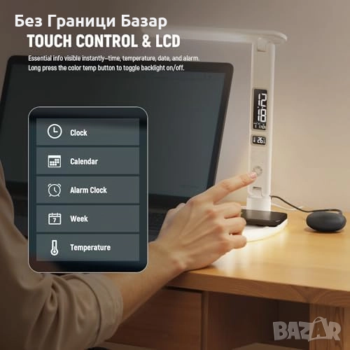 Компактна LED настолна лампа с модерен LCD дисплей за температура, дата и час