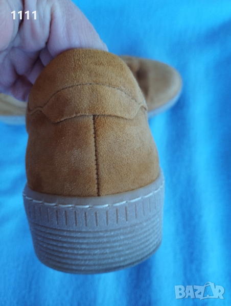 Обувките са обувани броени пъти в отлично състояние са.Цвят горчица.Мек естествен велур.Много удобни и комфортни.Лесно се обуват.Номер 41 с дължина на стелката 26,5см.Цена 68лв.
