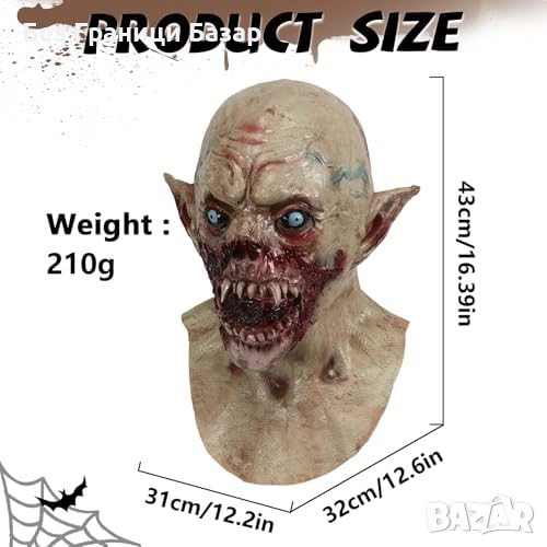 Реалистична маска на вампир с пълен обхват на главата и впечатляващ ефект.