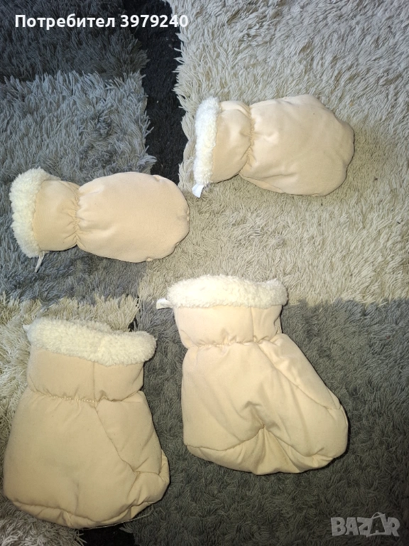 Има ботушки и ръкавички! На снимките цветът не е много точен-по бежав е.