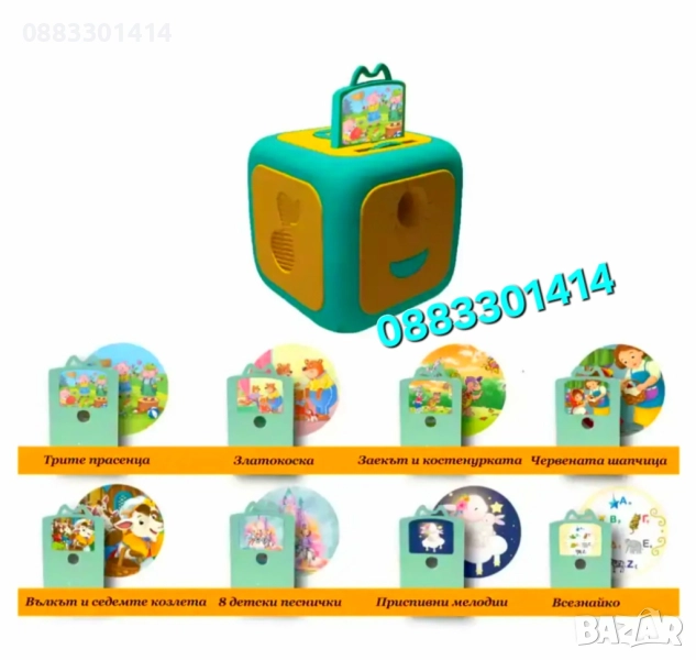 Този уникален прожектор разказва 5 класически приказки, учи децата на азбуката, формите, числата и сезоните, прожектира изображения на тавана или стената и възпроизвежда любими детски песни и приспивни мелодии.