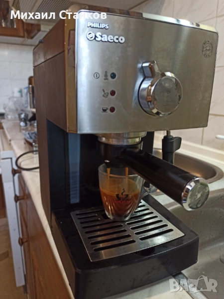Кафе машина Саеко Поемия с ръкохватка крема диск работи перфектно и прави супер кафе с каймак