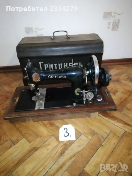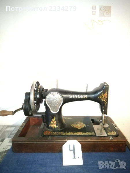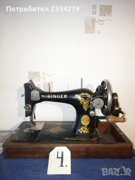шевна машина ,,SINGER" има и капак, цена ; N:2 ръчна шевна машина ,,SiNGER" стара немска изработка с капак, цена лв.; N:3 стара немска шевна машина ,,GRITZNER" дълга база, произведена за царство България, размери 55х23см.,комплект с капак, цена ; N:4 ,,SINGER" стара немска шевна машина, ръчно задвижваща се, цена 55лв.( липсва едното капаче под иглата и крачето)