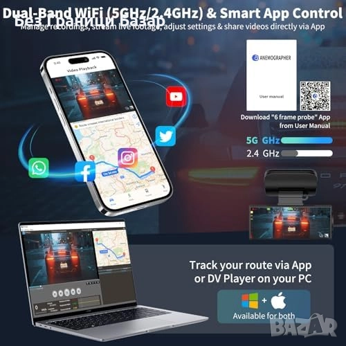 Двоен Wi-Fi (5GHz/2.4GHz) за бързо свързване и управление през приложение