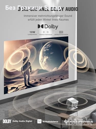Нов черен Домашен кино проектор 4K HDR10+ с Google TV и Bluetooth звук