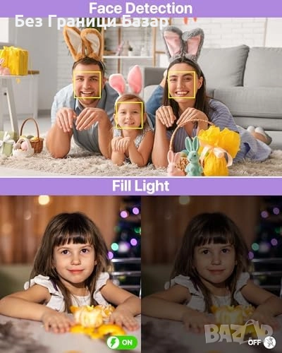 Нова детска Портативна 44MP камера с видео 1080P и светкавица – лилава