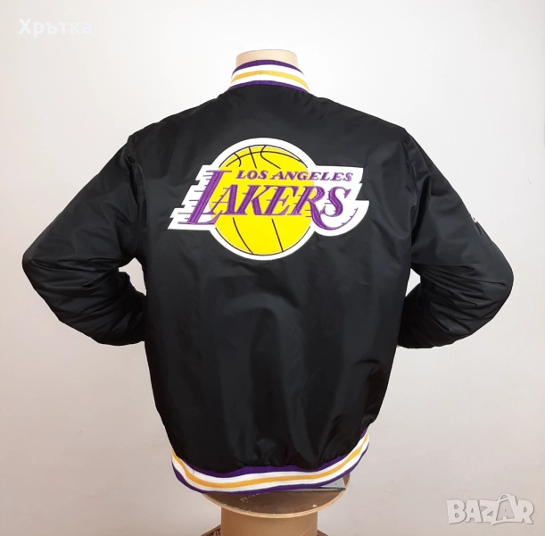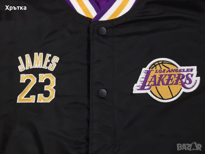 Лимитиран модел от фен колекцията на NBA – съчетава класическа varsity визия, лъскава сатенена материя и емблематични Lakers детайли, създаден за фенове на LeBron James и баскетболната култура.