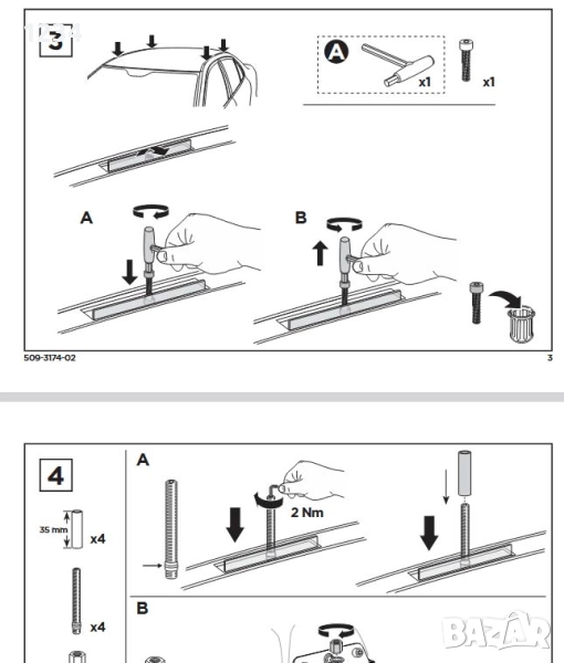 В зависимост от вида на рейлингите - стоманени или алуминиеви, закрепването на вело багажниците и другите аксесоари става съответно с П-образи скоби или Т-фиксатори ( за Т-канала при алуминиевите греди).