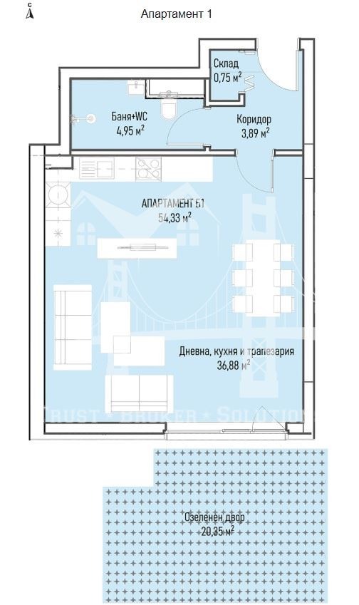 Агенция Trust Broker Solutions предлага на Вашето внимание изключително просторен и функционален едностаен апартамент в затворен комплекс от висок клас. Денонощна охрана и поддръжка на комплекса.