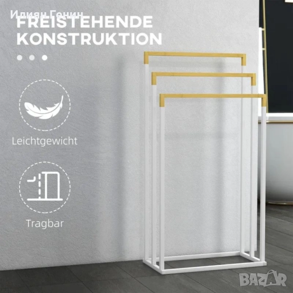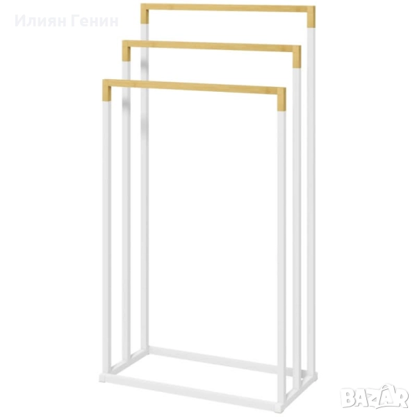 Комплект от 3 държача за кърпи kleankin, индустриален дизайн, бамбук, 45 x 22,5 x 86 см, бял + естествен цвят - 60.00лв.