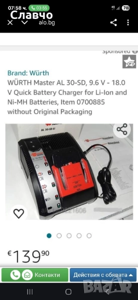 Зарядно за батерий вюрт оргинално → Обява 52083159