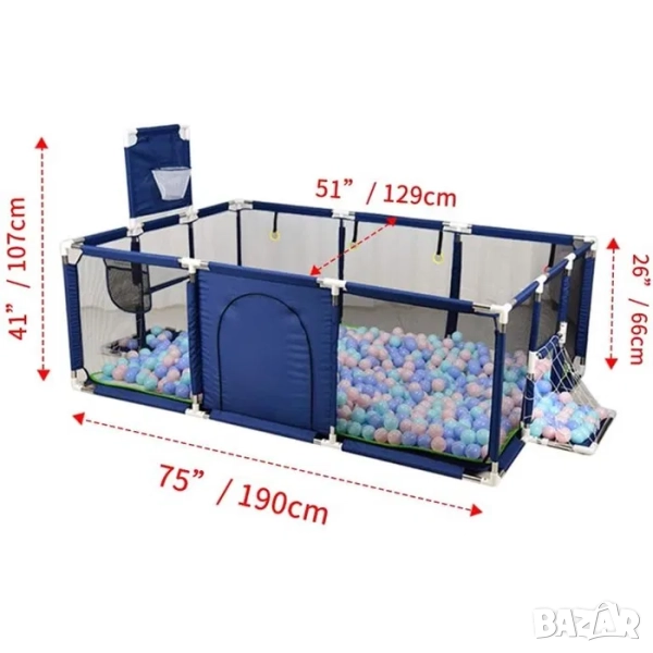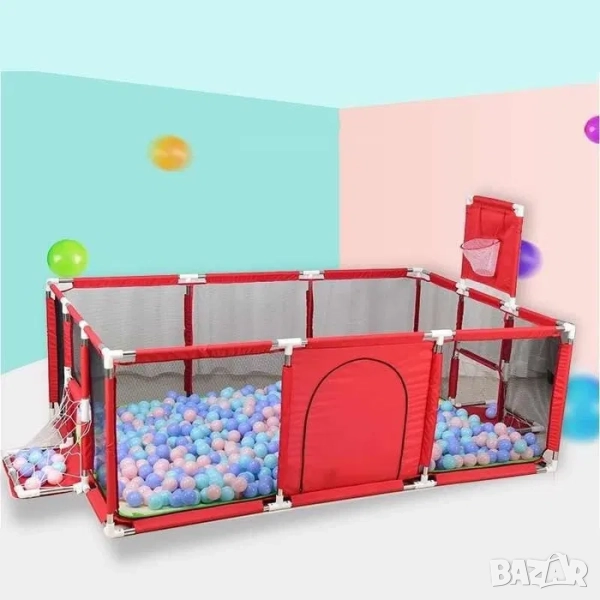 Голяма детска кошара за игра с футболен и баскетболен кош, преграда