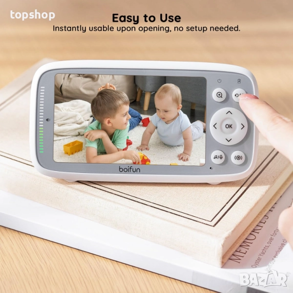 Бебешкият монитор Boifun е готов за употреба веднага щом го стартирате - не е необходима сложна настройка! Усъвършенстваната 2.4GHz FHSS безжична технология се свързва сигурно без Wi-Fi, без радиация, осигурявайки пълна поверителност за вас и безопасност за вашето мъниче.