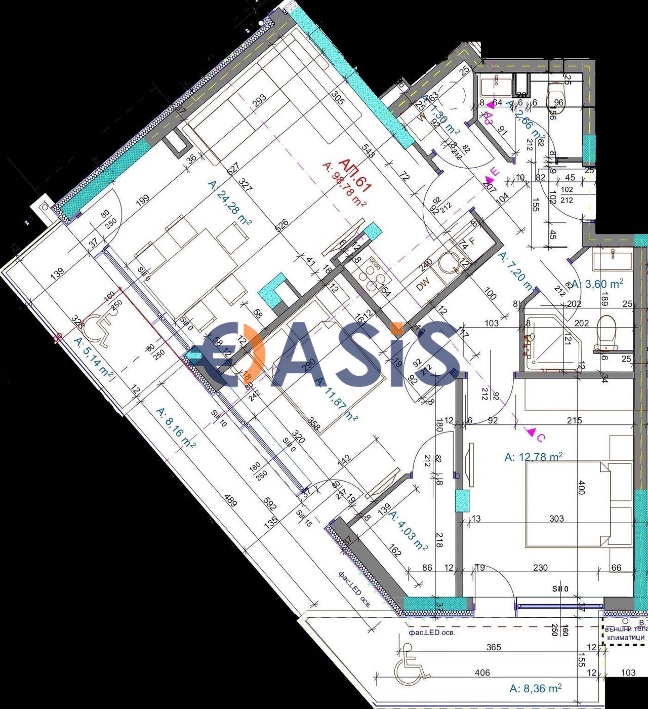 Обща площ: 116.76 кв. м.