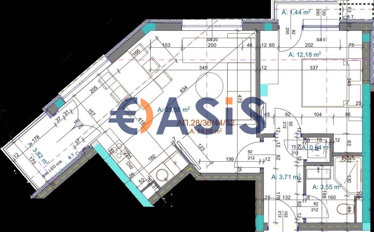 Обща площ: 69.64 кв. м.