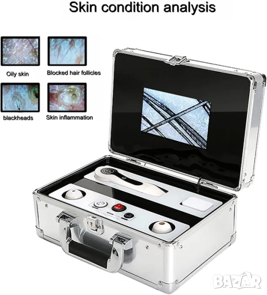 - Анализ на кожата и тест за коса Може да се използва за откриване на кожни проблеми като пъпки, цветни петна, възпаления и др. Подходящ за тестване на съдържанието на мазнини в скалпа, влажността на косата, гъвкавостта и др. Добър за решаване на проблеми със скалпа и космените фоликули.