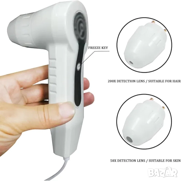 Двойна леща (50x / 200x свободно превключване), може да открие космените фоликули и състоянието на кожата, като изобразява ясно.