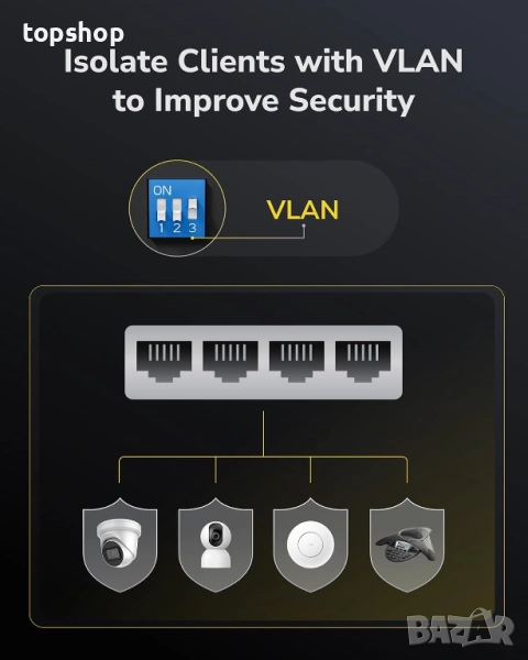 Поддръжката на VLAN режим изолира 8 PoE+ порта един от друг. Лесен е за управление и поддръжка, което го прави подходящ за много мрежови среди, като бизнес сгради, обществени сгради, хотели, офиси и др.