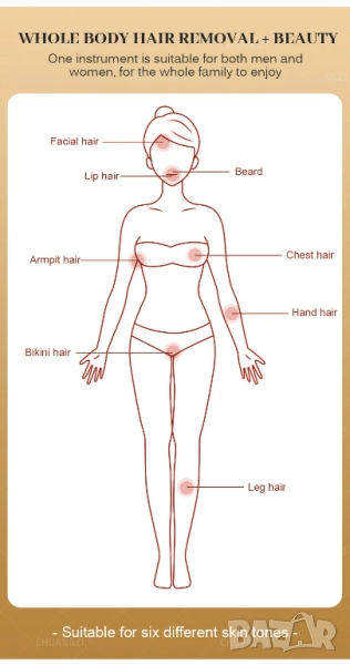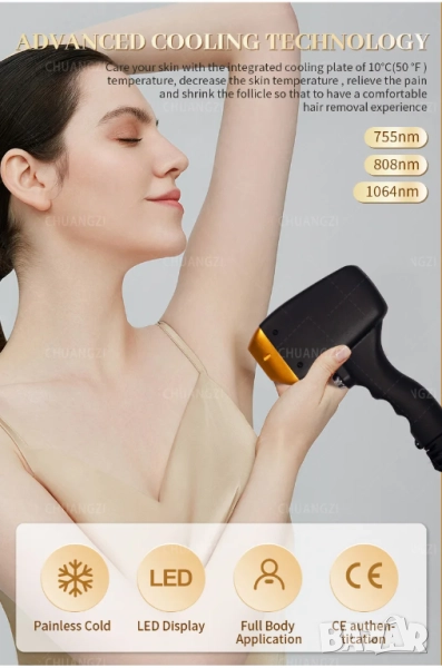 Безболезнена епилация : Насладете се на ефикасно обезкосмяване с усъвършенствана диодна лазерна технология, осигуряваща безопасно и безболезнено лечение за всички части на тялото.