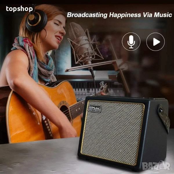 【Преносим】: С деликатен дървен корпус и компактен дизайн, китарният усилвател може лесно да се носи навсякъде с помощта на каишката, което го прави доста подходящ за пътуване.
