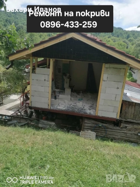 Извършваме всякъкъв вид покривни конструкции. Хидроизолация, претърсване, поставяне и пренареждане на битумни керемиди, отстраняване на течове, смяна на капандура, обшиване на бордове, наковаване на летви, измазване на капаци, табакери, навеси, барбекюта, веранди.