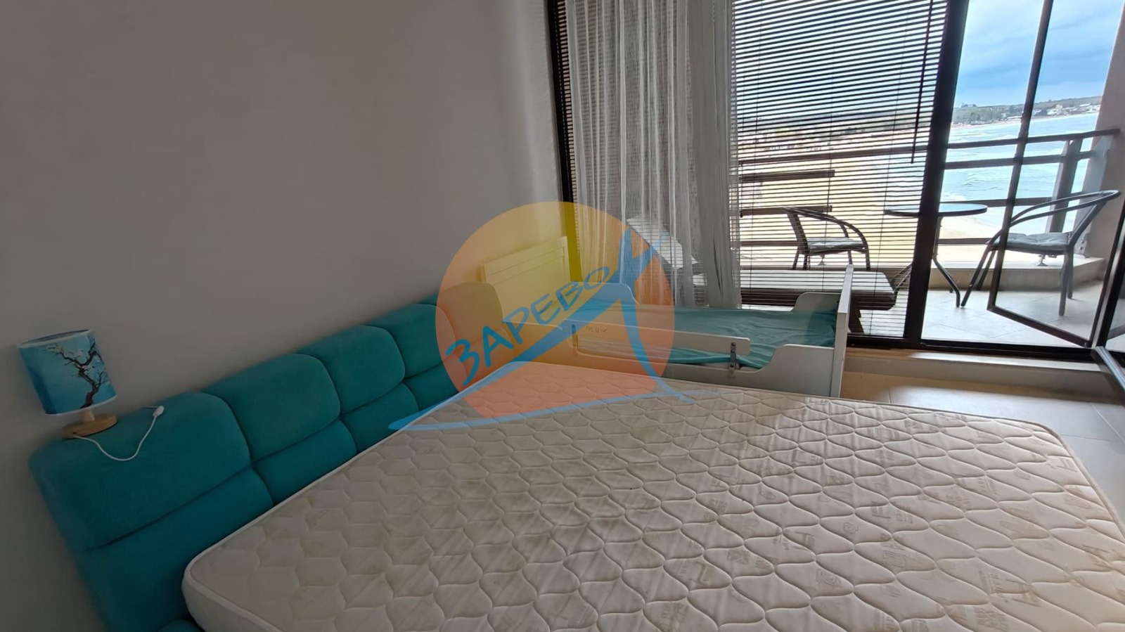 Созопол, Сенд лилис, първа линия с гледка море, на пясъка на плаж Каваци! Обзаведен двустаен апартамент с гледка море и басейн, целогодишен комплекс Пясъчни Лилии (Sand Lillies). Апартаментът е двустаен, с отделна спалня, разположен е на 4-ти, непоследен етаж, с площ от 79 кв.м. Състои се от антре, кухненски бокс, баня с тоалетна, дневна с хол и трапезария, спалня и тераса, на която се излиза от двете стаи, с гледка море.