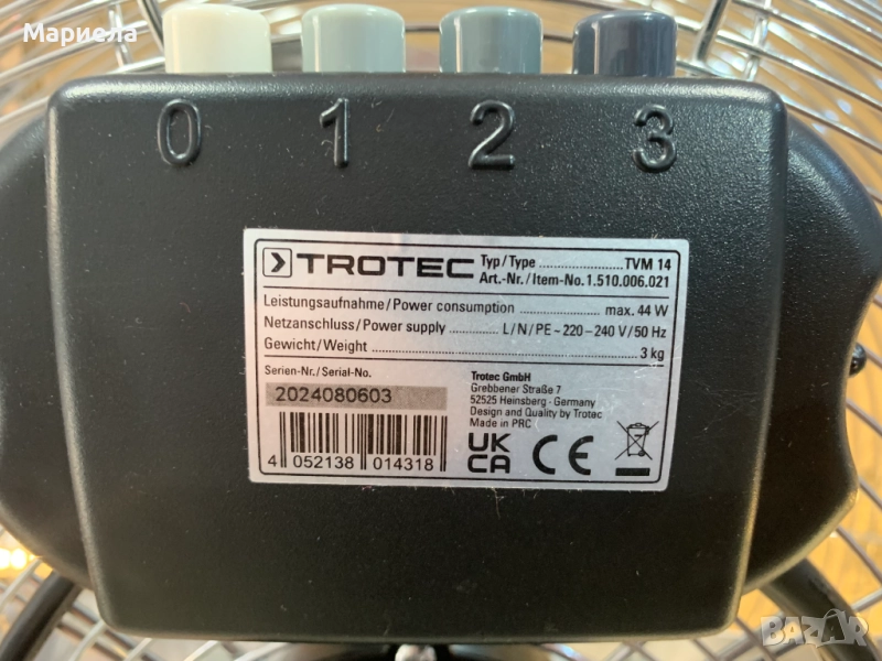 Вентилатора е закупен от разпродажба в Германия и е НОВ !