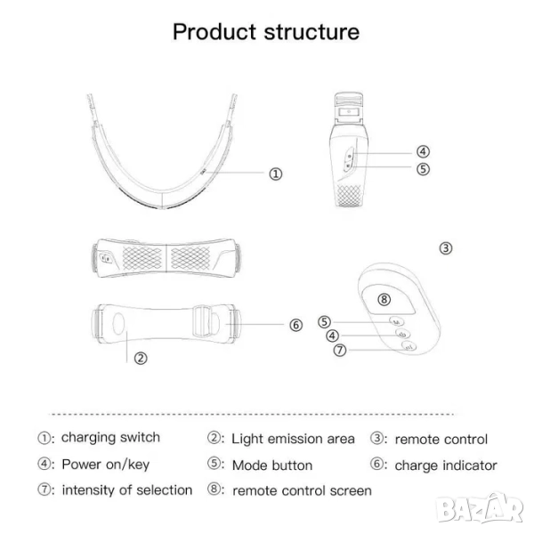 6. Поддържа просто управление с бутони и дистанционно управление за гъвкаво регулиране на нивата на интензивност и превключване на режимите на работа, незабавно включване и изключване, удобно за работа с една ръка дори след като носите колана.